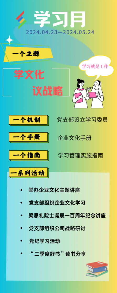 4月23日,神軟公司啟動首屆“學習月”活動,以“學文化 議戰(zhàn)略”為主題開展系列活動,鼓勵干部員工多學習、多參與公司戰(zhàn)略制定,樹立“學習就是工作”的理念,通過學習解放思想、轉(zhuǎn)變觀念、提高認識,進一步提高建設(shè)數(shù)字航天的能力。