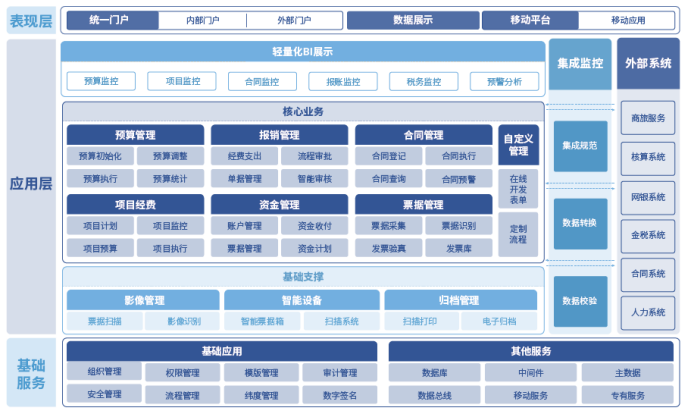 ??財金管控系統(tǒng)是為適應集團化企業(yè)“戰(zhàn)略管控”、“財務管控”、“業(yè)務管控”的管理模式的現(xiàn)狀研發(fā)的產(chǎn)品,擁有“高可用、高擴展、高易用”的產(chǎn)品特色,將移動互聯(lián)、人工智能、大數(shù)據(jù)技術與財務信息化經(jīng)驗(系統(tǒng)功能、安全保密、模塊劃分、業(yè)務需求等)積累充分結合,為企業(yè)提供符合自身業(yè)務特點的開放型財務共享服務平臺。